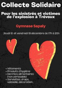 Suite à l’explosion du lundi 15/12, une collecte solidaire est organisée pour les sinistrés et…